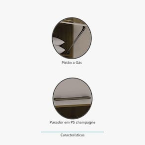 Caracteristicas: Estrutura: 100 MDP Acabamento: PF Quantidade de Portas: 1 Tipo de Dobradicas: Metalica Reforcada Tipo de Puxador: Plastico PS Champagne Sistema de Montagem: Cavilhas, Parafusos e Minifix Itens Inclusos: 1 Armario Aereo, Kit ferragens e Manual de Montagem. Garantia: 3 meses