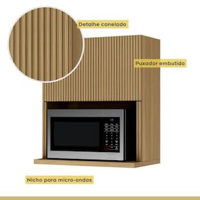 Armários aéreos 100% MDF com design moderno e acabamento canelado. Puxadores embutidos nas portas, dobradiças slowmotion para abertura suave e prateleiras espaçosas. Estrutura resistente com proteção contra umidade e montagem prática, garantindo durabilidade e excelente acabamento.