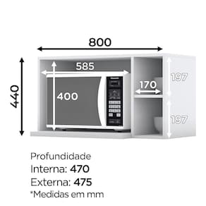Armário Aéreo Micro-ondas Americana Branco - Móveis Henn Branco Armário Aéreo Micro-ondas Americana - Móveis Henn O Armário Aéreo Americana é perfeito para complementar sua cozinha. Ele conta com 2 nichos para decoração e acessórios e amplo espaço para micro-ondas. Oferece charme e funcionalidade ao ambiente. ESPECIFICAÇÕES: - Estrutura 100% MDF - Acabamento UV - Nichos - Espaço para micro-ondas 40 x 58,5 x 45,5 cm