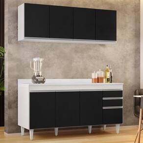 Se você procura uma Cozinha moderna e completa, vem conhecer o Armário Aéreo Nevada e Balcão para Pia com Tampo 160cm Arkansas Branco/Preto, da Lumil!