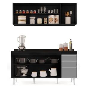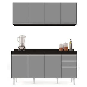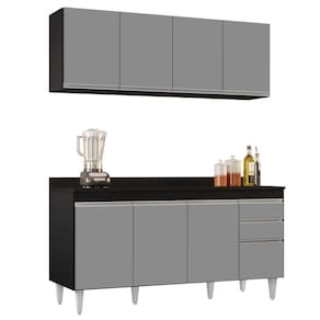 Se você procura uma Cozinha moderna e completa, vem conhecer o Armário Aéreo Nevada e Balcão para Pia com Tampo 160cm Arkansas Preto/Cinza, da Lumil!