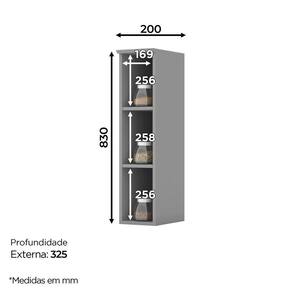 Armário Aéreo Nicho 20cm Americana Cinza - Móveis Henn Cinza Armário Aéreo Nicho 20cm Americana - Móveis Henn Os módulos da Cozinha Modulada Americana é uma linha clássica e atemporal, pensada para transformar esse ambiente no cantinho preferido do seu lar. Produzida 100% em MDF, na cor branco, uma pintura UV fosca, todas as portas e gavetas contam com usinagem em baixo relevo e os puxadores em zamac ouro velho garantem um charme extra a qualquer ambiente. ESPECIFICAÇÕES: - Estrutura 100% MDF - Acabamento UV - 3 Nichos
