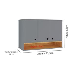 Todos nós queremos nossos cômodos bem organizados e limpos para receber pessoas queridas e facilitar nas tarefas do dia-a-dia e para isso foi desenvolvido o armário suspenso Jessica.Produzido em MDP, consta com 3 portas, um amplo nicho e prateleira para acomodar itens como canecas panelas, e tudo aquilo que você achar interessante. Afinal quem melhor do que você para decorar e arrumar o seu cantinho da melhor maneira possível? Aproveite e faça do seu lar ainda mais charmoso e sofisticado.Dimensões do produto Montado:Altura: 62 cmLargura: 88,8 cmProfundidade: 27 cmPeso suportado: até 20kg distribuídosObservações:- Suspenso;- 3 Portas;- Prateleira interna;- Produzido em MDP 15 mm;- Os objetos que ambientam as fotos não acompanham o produto;- O produto será entregue desmontado;- É de inteira responsabilidade do cliente a montagem do produto e/ou instalação, custos de transporte por escadas e/ou elevadores, guincho ou içamento, assim como possíveis danos provenientes de manuseio inadequado;- Embora o produto acompanhe o manual de montagem, verifique a complexidade antes de decidir montá-lo sozinho, recomendamos que contrate um profissional de sua confiança;- Mantenha as informações de contato e endereço de entrega atualizadas para entrarmos em contato, caso seja necessário;- Fique atento, nossas cores podem sofrer alterações dependendo do seu monitor;- ANTES DE MONTAR O SEU PRODUTO, certifique-se que todas as instruções dispostas no manual, bem como todas as ferragens descritas, estejam presentes dentro da embalagem. Verifique se há alguma peça danificada, caso esteja, prestaremos a devida assistência dentro do prazo da garantia.- Imagens meramente ilustrativas.