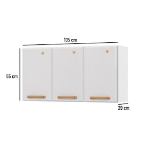 CARACTERÍSTICAS DE MÓVEIS Tipo de Estrutura do Móvel - 100% aço Tipo de Pintura - Eletrostática a Pó Tipo de Acabamento da Pintura - Alto Brilho Características de móveis - Armário Aéreo - Armário Triplo Tipo de puxador - ABS/PVC Quantidade de Portas - 3 Portas de Abrir Garantia - 3 meses