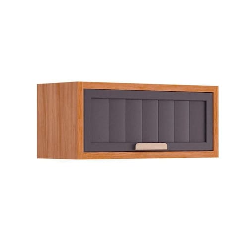 Armário Aéreo p/ Cozinha Estela Geladeira c/ 1 Porta Basculante Ripada 80 cm Cinamomo/Titanium - MGM - Blush