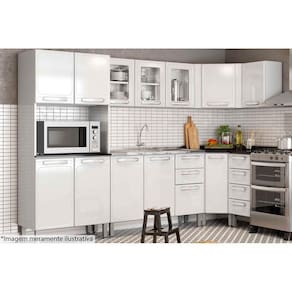 Armário Aéreo p/ Cozinha Evidence 7009 3 Portas c/Vidro 120cm Branco - Bertolini
