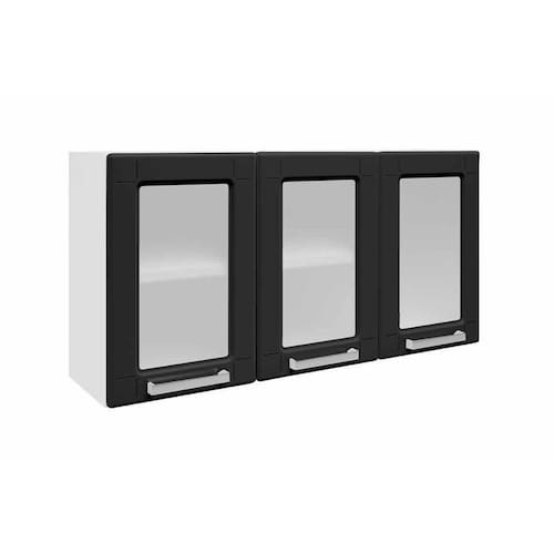 Armário Aéreo p/ Cozinha Múltipla 6010 3 Portas c/Vidro 105cm Branco/Preto - Bertolini