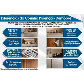 Material de Estrutura - 100% MDF Estilo do Móvel - Moderno Tipo de Móvel - Armário Aéreo - Modulado Tipo de Pintura - Pintura em UV (Ultravioleta) Tipo de Acabamento da Pintura - Fosca Vantagens Extras dos Moveis de Cozinha - Pode ser utilizado sozinho ou conjunto - Pode ser utilizado em projeto modulado - Vantagens dos Modulados Material p/ Abertura Portas - Pistão a Gás Tipo de Porta - Portas Basculante