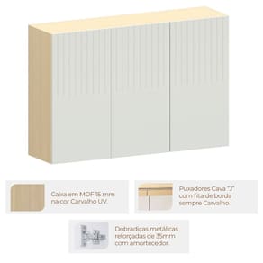 • 1 x Armário Aéreo para Cozinha 120 cm 3 Portas Aurora