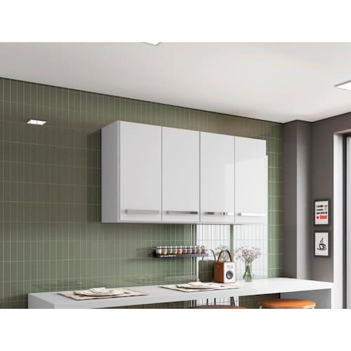 Armario Aereo para Cozinha 4 Portas Branco Georgia Brienza Movelaria