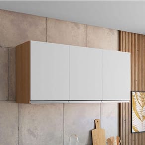Armário Aéreo para Cozinha Ambiente Andréia 3 Portas Amêndoa Branco - AJL