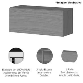 Características do Armário Aéreo Geladeira 100% MDF Luna: - Estrutura em 100% MDF; - 1 Porta Basculante; - Divisão Interna; - Acabamento em Verniz Alto Brilho e Fosco; - Não Acompanha Objetos Decorativos; - Montagem por Conta do Comprador;