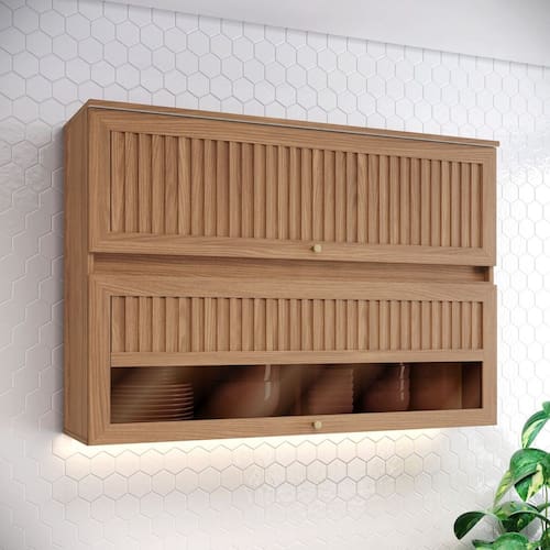 O Armário Aéreo 120cm 2 Portas basculantes com detalhes ripados e Vidro da linha de cozinha modulada Requinte Henn tem estilo e design contemporâneo. É a solução perfeita para a sua cozinha, com praticidade e beleza transforma o espaço dando um toque charmoso e elegante. Projetado para ser compacto e funcional, com materiais de altíssima qualidade e resistência garante segurança e durabilidade que sua cozinha merece.