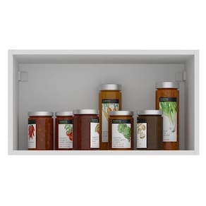 Fabricado com materiais de alto padrão, conta com puxador slim em alumínio, dobradiças metálicas com amortecimento que proporciona um fechamento suave e pistão a gás que mantém a porta suspensa.