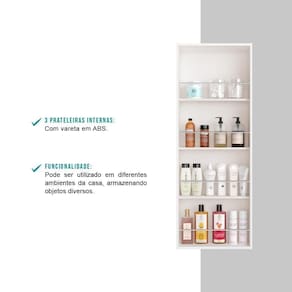 O Armário Utilitário Carraro é a peça ideal para ser utilizada em diferentes cômodos da casa, ajudando a manter todos os objetos em ordem e assim facilitando as tarefas do dia a dia. É uma solução indispensável para quem precisa de mais espaço e organização para o ambiente, pois conta com diversas prateleiras internas, além de permitir ser fixada tanto na parede como na lateral de roupeiros.