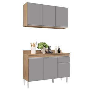 Para uma Cozinha linda e cheia de charme, conheça o Armário Aéreo Virgínia e Balcão para Pia com Tampo 120cm Arizona Castanho/Cinza, da Lumil.