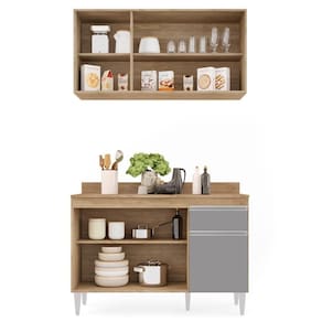 Conteúdo da Embalagem: 1 Balcão com tampo, 1 Armário Aéreo.