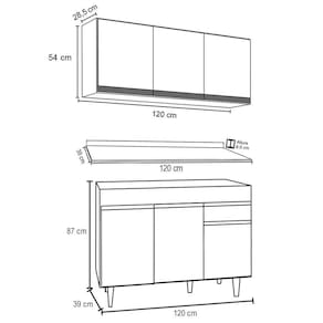 Armário Aéreo: 120 x 54 x 29 cm.