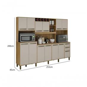 Espaço do produto: Tampo central 1795x490 mm (LxP) Nicho lateral 700x450x570 mm (LxPxA) Nicho micro-ondas 700x450x430 (LxPxA)