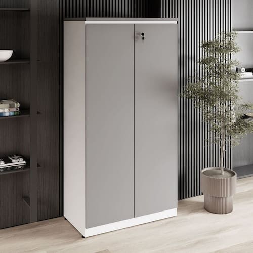 Armário Alto 160cm para Escritório 2 Portas com Chave Corporate F5 Cinza Sagrado / Branco