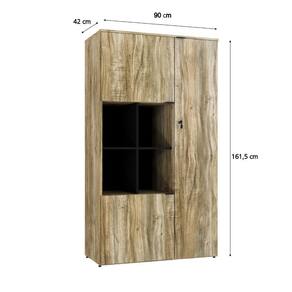 Armário Alto C/nicho E 03 Portas 161,5x90x42cm Wlan90 Carvalho / Preto Carvalho / Preto