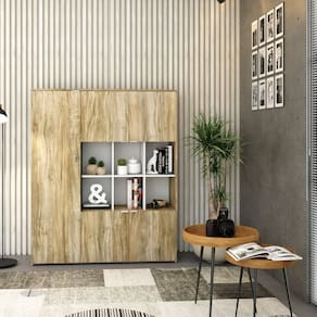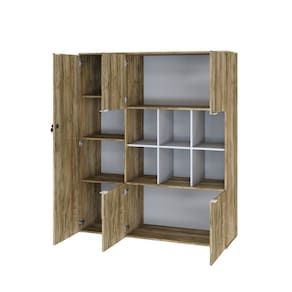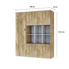 Armário Alto com Nichos e 05 Portas 161,5x135x42cm Carvalho/Branco - Marrom