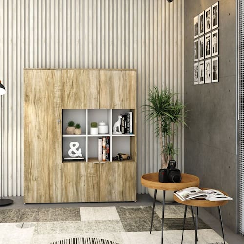 Armário Alto com Nichos WLAN135 WorkLab é uma peça de mobiliário que alia capacidade de armazenamento com um design elegante e moderno, ideal para escritórios que valorizam tanto a funcionalidade quanto a estética. Com nichos centrais abertos e cinco portas, este armário oferece uma solução de armazenamento diversificada, perfeita para exibir itens decorativos ou manter materiais de consulta rápida à mão. Suas portas possuem dobradiças com amortecedor que garantem um fechamento suave e silencioso, além dos puxadores em alumínio, elegantes e funcionais. O Armário WLAN135 WorkLab é mais que um simples móvel de armazenamento, é uma declaração de estilo que traz organização e sofisticação ao ambiente de trabalho.