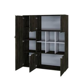Armário Alto com Nichos e 05 Portas 161,5x135x42cm Carvalho/Preto - Marrom