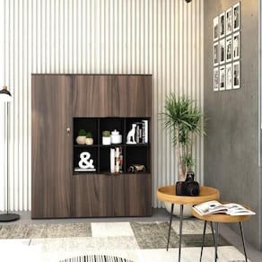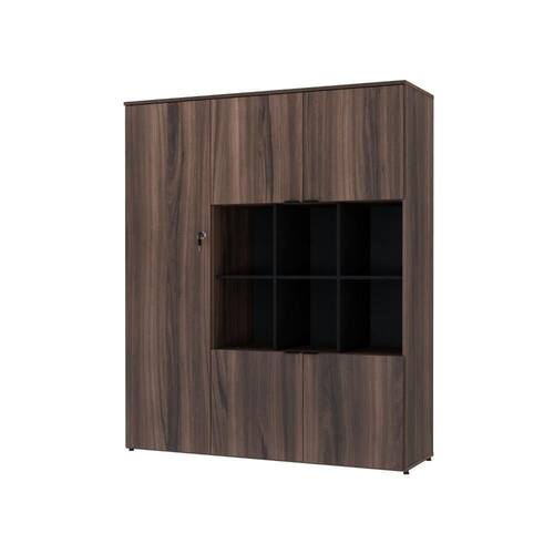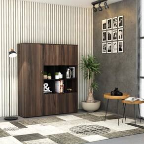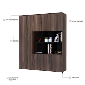 Armário Alto C/nichos E 05 Portas 161,5x135x42cm Wlan135 Nogal / Preto Nogal / Preto
