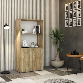 Armário Alto Estante C/02 Portas 161,5x80x42cm Wlae80 Carvalho / Branco Carvalho / Branco