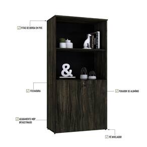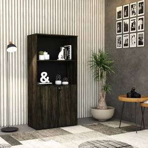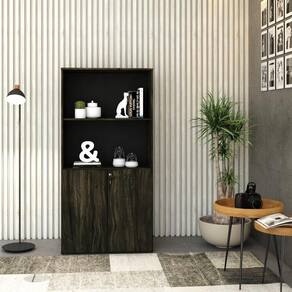 Armário Alto Estante C/02 Portas 161,5x80x42cm Wlae80 Carvalho Dark / Preto Carvalho Dark / Preto
