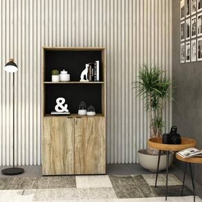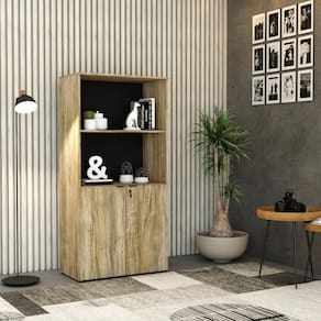 Armário Alto Estante C/02 Portas 161,5x80x42cm Wlae80 Carvalho / Preto Carvalho / Preto