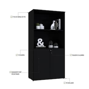 Armário Alto Estante C/02 Portas 161,5x80x42cm Wlae80 Preto ônix Preto ônix