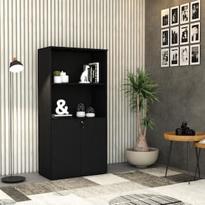 Armário Alto Estante C/02 Portas 161,5x80x42cm Wlae80 Preto Tx Preto Tx