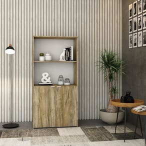 Armário Alto Estante com 2 Portas 161,5x80x42cm Carvalho/Branco - Marrom