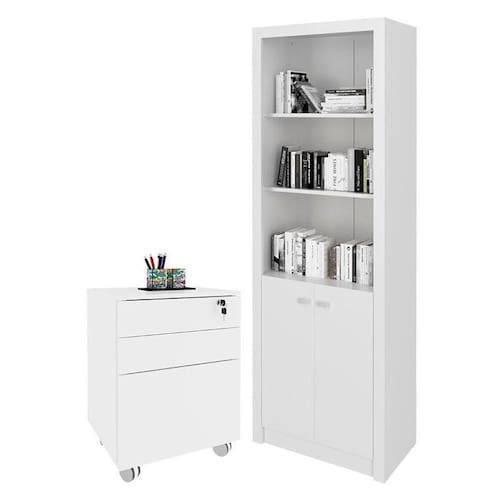 Armário Alto ME4110 e Armário Gaveteiro Arquivo ME4148 Para Escritório Branco - Tecnomobili