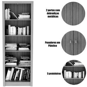 Característica do Armário Alto para Escritório 2 portas e 5 Prateleiras: - Estrutura em MDP; - Acabamento em BP; - 2 portas com dobradiças metálicas; - Puxadores em plástico; - 5 prateleiras suportando até 12 kg cada; - Para uma limpeza mais efetiva, utilizar apenas pano macio umedecido e sabão neutro. Não utilizar produtos abrasivos. - Não acompanha objetos de decoração;