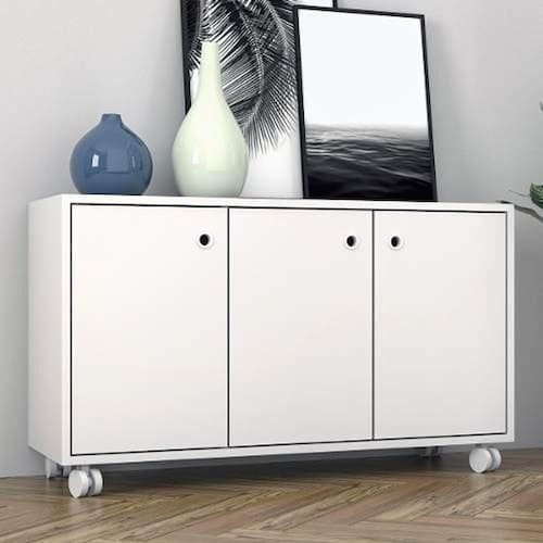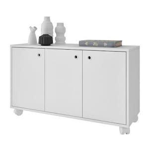 Armário BHO 25, produzido em MDP 15mm com acabamento em BP (fosco). Possui 3 portas com puxador em polímero (ABS), conta também, 1 prateleira e 1 divisória e um conjunto de rodízios para facilitar a movimentação.