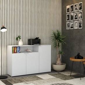 Sobre o ProdutoArmário Aparador C/03 Portas e Nicho 89,5x135x42cm WLAP135 Branco TXDescrição do Produto:O Armário Aparador com 03 Portas e Nicho WorkLab é uma peça de mobiliário que combina beleza e funcionalidade, perfeita para complementar qualquer escritório moderno. Com linhas limpas, este aparador oferece amplo espaço interno, enquanto o nicho superior é ideal para guardar itens decorativos ou de fácil acesso. Suas portas possuem dobradiças com amortecedor que garantem um fechamento suave e silencioso, além dos puxadores em alumínio, discretos e funcionais. O Armário Aparador WLAP135 WorkLab é mais do que um simples móvel, é uma peça que valoriza o ambiente de trabalho com sua presença marcante e prá linha WorkLab combina funcionalidade, design contemporâneo e durabilidade para criar um ambiente de trabalho eficiente e inspirador. Com uma ampla variedade de peças versáteis, a WorkLab oferece soluções completas para escritórios, home offices e espaços corporativos. Explore os principais componentes dessa linha e ache a escolha certa para quem busca qualidade, design e funcionalidade em móveis de escritório. Transforme seu espaço de trabalho com a elegância e praticidade da linha Inclusos:1 Armário AparadorDimensões dos Produtos:Armário Aparador C/03 Portas e Nicho 89,5x135x42cm WLAP135 Branco TX: 135 x 42 x 89,5 cmInformações Logísticas (Comp. X Prof. X Alt.) 156 x 48 x 13,5 cm - Peso: 43,184 KgPeso Total: 43,184 KgObservações:Não acompanha acessórios decorativos. Imagens meramente ilustrativas.Informações Técnicas / Características:- Cor do Produto: Branco TX- Cor do Predominante: Branco- Marca: Metalig- Modelo: WLAP135- Linha: WorkLab- Material: Mdp - Acabamento: BP- Escala de Brilho: Fosco- Fita de Borda: Pvc- Possui Portas: 3- Tipo de Porta: Bater- Tipo da Dobradiça: Metálica C/Amortecedor- Possui Gavetas: Não - Possui Chave: Não - Material do Puxador: Alumínio- Possui Prateleiras: 3- Peso Máximo por Prateleira: 10kg - Pés Niveladores: Sim - Acabamento Estrutura: BP- Formato: Retangular- Possui Nicho: 1 - Suporta Até (kg): 70kg- Comprimento: 135cm- Profundidade: 42cm- Altura: 89,5cm - Peso Lí.: 42,125Kg- Recomendações de Uso, Manutenção e Limpeza: Para a limpeza, utilize flanela seca ou pano macio levemente umedecido em água. Utilize um pano seco em seguida. Evite com produtos químicos (solventes, thinner, acetona, etc) e não utilize nenhum tipo de esponja de aço.- Necessita de Montagem: Sim / Acompanha Manual de Montagem- Complexidade da Montagem: Alta: deve ser montado por um montador especializado.- Garantia: 6 meses Quantidade de volumes: 1 | Altura: 89,5 | Comprimento: 135 | Marca: Compace | Modelo: WLAP135 | Necessita montagem: Sim | Quantidade máxima de pedido: 1 | Largura: 42 | Profundidade: 42 Cor: Branco TX