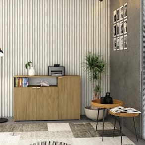 Sobre o ProdutoArmário Aparador C/03 Portas e Nicho 89,5x135x42cm WLAP135 Vermont Oak / BrancoDescrição do Produto:O Armário Aparador com 03 Portas e Nicho WorkLab é uma peça de mobiliário que combina beleza e funcionalidade, perfeita para complementar qualquer escritório moderno. Com linhas limpas, este aparador oferece amplo espaço interno, enquanto o nicho superior é ideal para guardar itens decorativos ou de fácil acesso. Suas portas possuem dobradiças com amortecedor que garantem um fechamento suave e silencioso, além dos puxadores em alumínio, discretos e funcionais. O Armário Aparador WLAP135 WorkLab é mais do que um simples móvel, é uma peça que valoriza o ambiente de trabalho com sua presença marcante e prá linha WorkLab combina funcionalidade, design contemporâneo e durabilidade para criar um ambiente de trabalho eficiente e inspirador. Com uma ampla variedade de peças versáteis, a WorkLab oferece soluções completas para escritórios, home offices e espaços corporativos. Explore os principais componentes dessa linha e ache a escolha certa para quem busca qualidade, design e funcionalidade em móveis de escritório. Transforme seu espaço de trabalho com a elegância e praticidade da linha Inclusos:1 Armário AparadorDimensões dos Produtos:Armário Aparador C/03 Portas e Nicho 89,5x135x42cm WLAP135 Vermont Oak / Branco: 135 x 42 x 89,5 cmInformações Logísticas (Comp. X Prof. X Alt.) 156 x 48 x 13,5 cm - Peso: 43,184 KgPeso Total: 43,184 KgObservações:Não acompanha acessórios decorativos. Imagens meramente ilustrativas.Informações Técnicas / Características:- Cor do Produto: Vermont Oak / Branco- Cor do Predominante: Marrom Claro- Marca: Metalig- Modelo: WLAP135- Linha: WorkLab- Material: Mdp - Acabamento: BP- Escala de Brilho: Fosco- Fita de Borda: Pvc- Possui Portas: 3- Tipo de Porta: Bater- Tipo da Dobradiça: Metálica C/Amortecedor- Possui Gavetas: Não - Possui Chave: Não - Material do Puxador: Alumínio- Possui Prateleiras: 3- Peso Máximo por Prateleira: 10kg - Pés Niveladores: Sim - Acabamento Estrutura: BP- Formato: Retangular- Possui Nicho: 1 - Suporta Até (kg): 70kg- Comprimento: 135cm- Profundidade: 42cm- Altura: 89,5cm - Peso Lí.: 42,125Kg- Recomendações de Uso, Manutenção e Limpeza: Para a limpeza, utilize flanela seca ou pano macio levemente umedecido em água. Utilize um pano seco em seguida. Evite com produtos químicos (solventes, thinner, acetona, etc) e não utilize nenhum tipo de esponja de aço.- Necessita de Montagem: Sim / Acompanha Manual de Montagem- Complexidade da Montagem: Alta: deve ser montado por um montador especializado.- Garantia: 6 meses Quantidade de volumes: 1 | Altura: 89,5 | Comprimento: 135 | Marca: Compace | Modelo: WLAP135 | Necessita montagem: Sim | Quantidade máxima de pedido: 1 | Largura: 42 | Profundidade: 42 Cor: Vermont Oak / Branco