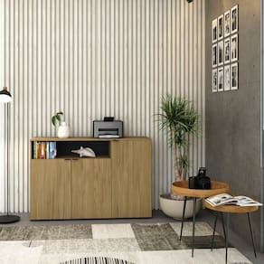 Sobre o ProdutoArmário Aparador C/03 Portas e Nicho 89,5x135x42cm WLAP135 Vermont Oak / BrancoDescrição do Produto:O Armário Aparador com 03 Portas e Nicho WorkLab é uma peça de mobiliário que combina beleza e funcionalidade, perfeita para complementar qualquer escritório moderno. Com linhas limpas, este aparador oferece amplo espaço interno, enquanto o nicho superior é ideal para guardar itens decorativos ou de fácil acesso. Suas portas possuem dobradiças com amortecedor que garantem um fechamento suave e silencioso, além dos puxadores em alumínio, discretos e funcionais. O Armário Aparador WLAP135 WorkLab é mais do que um simples móvel, é uma peça que valoriza o ambiente de trabalho com sua presença marcante e prá linha WorkLab combina funcionalidade, design contemporâneo e durabilidade para criar um ambiente de trabalho eficiente e inspirador. Com uma ampla variedade de peças versáteis, a WorkLab oferece soluções completas para escritórios, home offices e espaços corporativos. Explore os principais componentes dessa linha e ache a escolha certa para quem busca qualidade, design e funcionalidade em móveis de escritório. Transforme seu espaço de trabalho com a elegância e praticidade da linha Inclusos:1 Armário AparadorDimensões dos Produtos:Armário Aparador C/03 Portas e Nicho 89,5x135x42cm WLAP135 Vermont Oak / Branco: 135 x 42 x 89,5 cmInformações Logísticas (Comp. X Prof. X Alt.) 156 x 48 x 13,5 cm - Peso: 43,184 KgPeso Total: 43,184 KgObservações:Não acompanha acessórios decorativos. Imagens meramente ilustrativas.Informações Técnicas / Características:- Cor do Produto: Vermont Oak / Branco- Cor do Predominante: Marrom Claro- Marca: Metalig- Modelo: WLAP135- Linha: WorkLab- Material: Mdp - Acabamento: BP- Escala de Brilho: Fosco- Fita de Borda: Pvc- Possui Portas: 3- Tipo de Porta: Bater- Tipo da Dobradiça: Metálica C/Amortecedor- Possui Gavetas: Não - Possui Chave: Não - Material do Puxador: Alumínio- Possui Prateleiras: 3- Peso Máximo por Prateleira: 10kg - Pés Niveladores: Sim - Acabamento Estrutura: BP- Formato: Retangular- Possui Nicho: 1 - Suporta Até (kg): 70kg- Comprimento: 135cm- Profundidade: 42cm- Altura: 89,5cm - Peso Lí.: 42,125Kg- Recomendações de Uso, Manutenção e Limpeza: Para a limpeza, utilize flanela seca ou pano macio levemente umedecido em água. Utilize um pano seco em seguida. Evite com produtos químicos (solventes, thinner, acetona, etc) e não utilize nenhum tipo de esponja de aço.- Necessita de Montagem: Sim / Acompanha Manual de Montagem- Complexidade da Montagem: Alta: deve ser montado por um montador especializado.- Garantia: 6 meses Quantidade de volumes: 1 | Altura: 89,5 | Comprimento: 135 | Marca: Compace | Modelo: WLAP135 | Necessita montagem: Sim | Quantidade máxima de pedido: 1 | Largura: 42 | Profundidade: 42 Cor: Vermont Oak / Preto