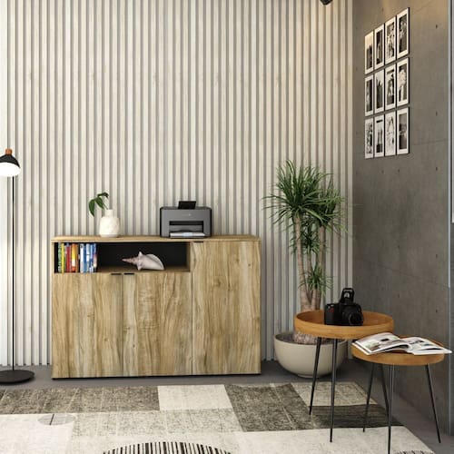 O Armário Aparador com 03 Portas e Nicho WorkLab é uma peça de mobiliário que combina beleza e funcionalidade, perfeita para complementar qualquer escritório moderno. Com linhas limpas, este aparador oferece amplo espaço interno, enquanto o nicho superior é ideal para guardar itens decorativos ou de fácil acesso. Suas portas possuem dobradiças com amortecedor que garantem um fechamento suave e silencioso, além dos puxadores em alumínio, discretos e funcionais. O Armário Aparador WLAP135 WorkLab é mais do que um simples móvel, é uma peça que valoriza o ambiente de trabalho com sua presença marcante e prática.
