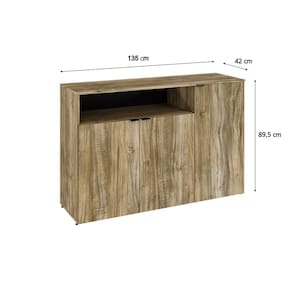 Armário Aparador com 3 Portas e Nicho 89,5cm x 135cm x 42cm Carvalho /Preto - Marrom