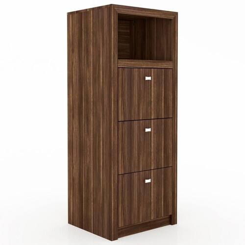Armário Arquivo 03 Gavetas Me4118 Nogal - Tecno Mobili O Armário Arquivo ME4118, é o móvel ideal para armazenar e organizar seus documentos, pois possui 03 gavetas com amplo espaço interno para pastas suspensas e um nicho. Sua estrutura é confeccionada em MDP 15 mm com acabamento em BP, que proporciona maior durabilidade e resistência ao produto. Além disso, conta com puxadores em PVC cromado e corrediças metálicas. Aproveite e leve para sua casa! Dimensão: Dimensões do produto (Largura x Altura x Profundidade): 52,2 x 132,5 x 44,5 cm.