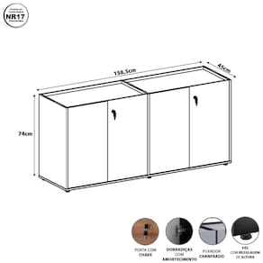 Armário Baixo 158,5cm Duplo com 4 Portas Tampo Embutido Corporate Cinza