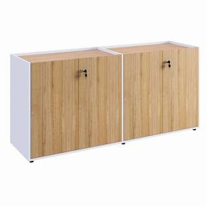 Armário Baixo 158,5cm Duplo com 4 Portas Tampo Embutido Corporate Macadâmia / Branco - Marrom