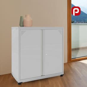 Eles são grandes aliados na organização do escritório, e também são uma boa opção pra usar em outros ambientes da casa. Lindos, práticos e muito funcionais. Armário baixo com o corpo confeccionado com aço chapa #24 0,60mm de espessura cor cinza cristal, tampo confeccionado com madeira MDP-BP de 15mm de espessura com 2 portas com 2 reforços, 1 prateleira fixa, puxadores e chaves.