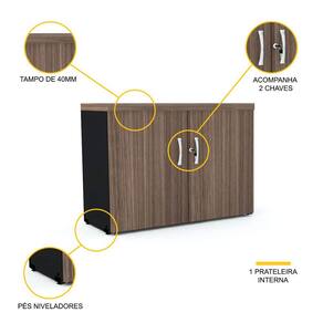 Nossa dica de móvel versátil para um ambiente profissional e elegante: este armário baixo em madeira escura, que serve como balcão de apoio, móvel para impressora, para o café ou para qualquer outra necessidade da sua empresa ou espaço de home-office. Use esse armário da maneira que for mais conveniente para seu projeto de decoração ou para sua rotina diária e organize seus documentos, livros, acessórios, utensílios de papelaria, papéis e materiais de escritório em geral. Com duas portas para guardar objetos e uma superfície livre para colocar o que quiser, você ganha espaço e tempo. Deixe sua vida em ordem e seu ambiente mais bonito com esse armário baixo da linha PE40 da Pandin, conhecida por suas peças de design clássico e sofisticado, que unem beleza, funcionalidade e estilo ao melhor custo-benefício do mercado. Nesta linha, você também vai encontrar uma diversidade de arquivos, estantes, gaveteiros e mesas que, combinados a este armário de madeira, podem compor um escritório sóbrio e de bom gosto, sob medida para suas necessidades.