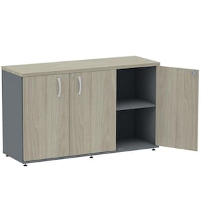 Armário Baixo Credenza Pe25 Pandin 121,50 Cm (Largura) Em Mdp Nogueira Casablanca E Grafito Com - Bege