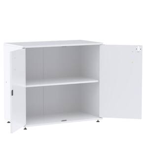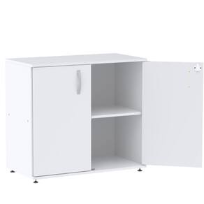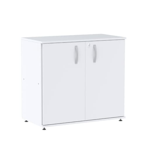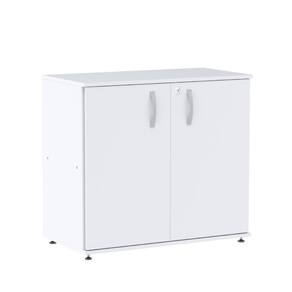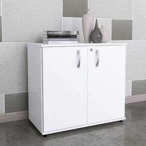 Características Técnicas: Chave de segurança Armário baixo confeccionado em madeira (MDP) com 2 portas e 3 prateleiras internas Fechadura cilíndrica tipo Yale com sistema articulado Puxadores em polietileno Pés que permitem regulagem quando há desnível do piso